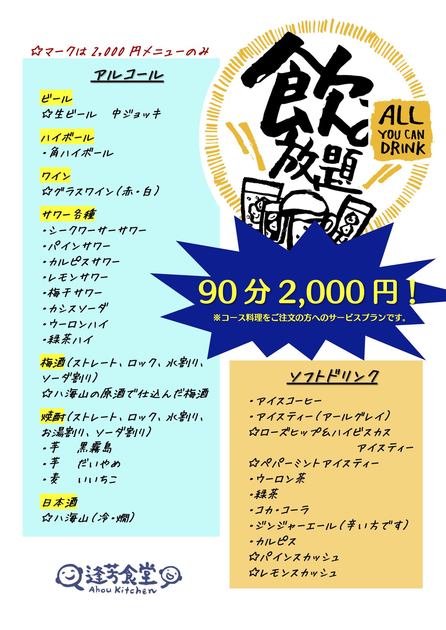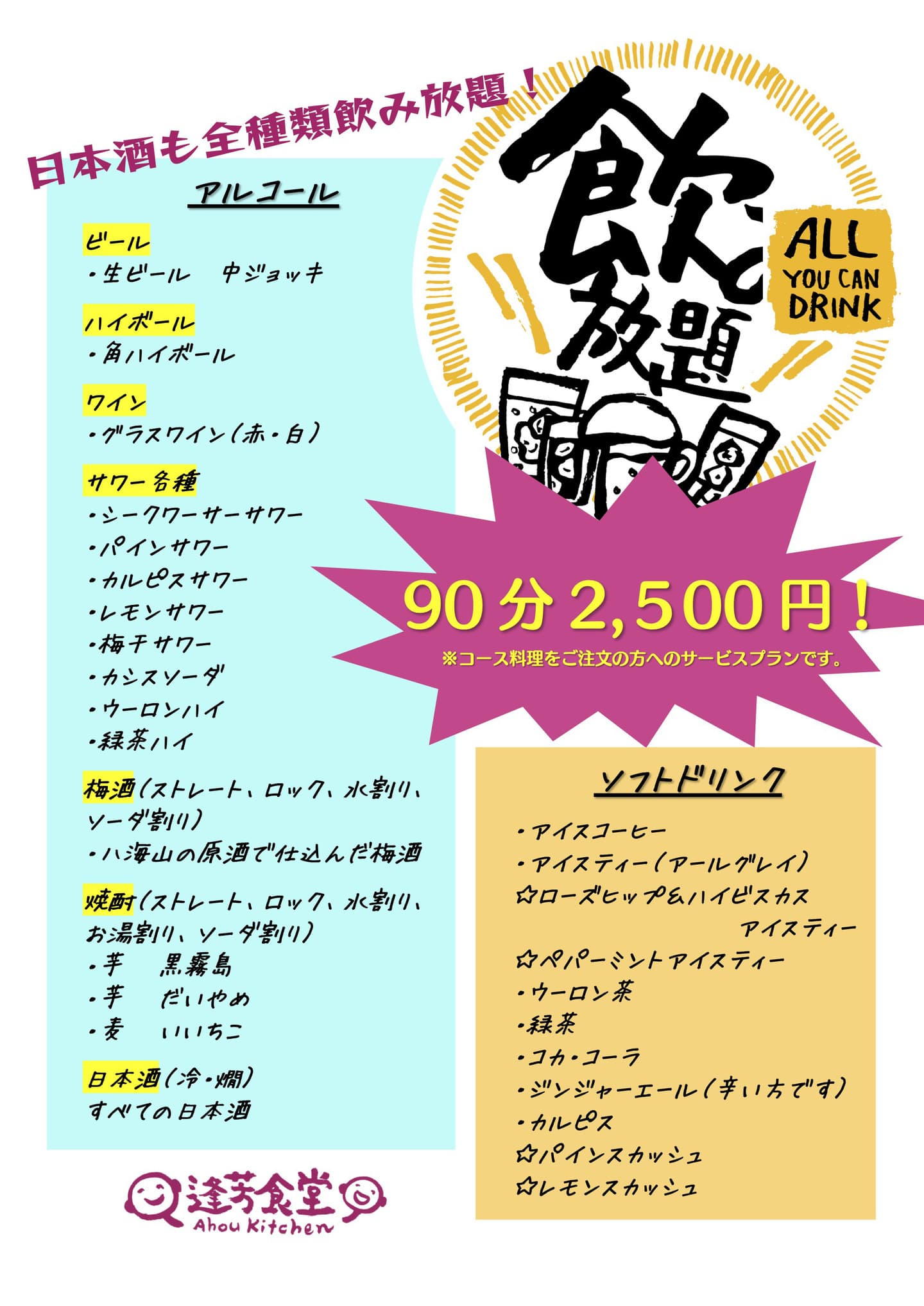 +1,500円、+2,000円、+2,500円で飲み放題プランもご用意しております!